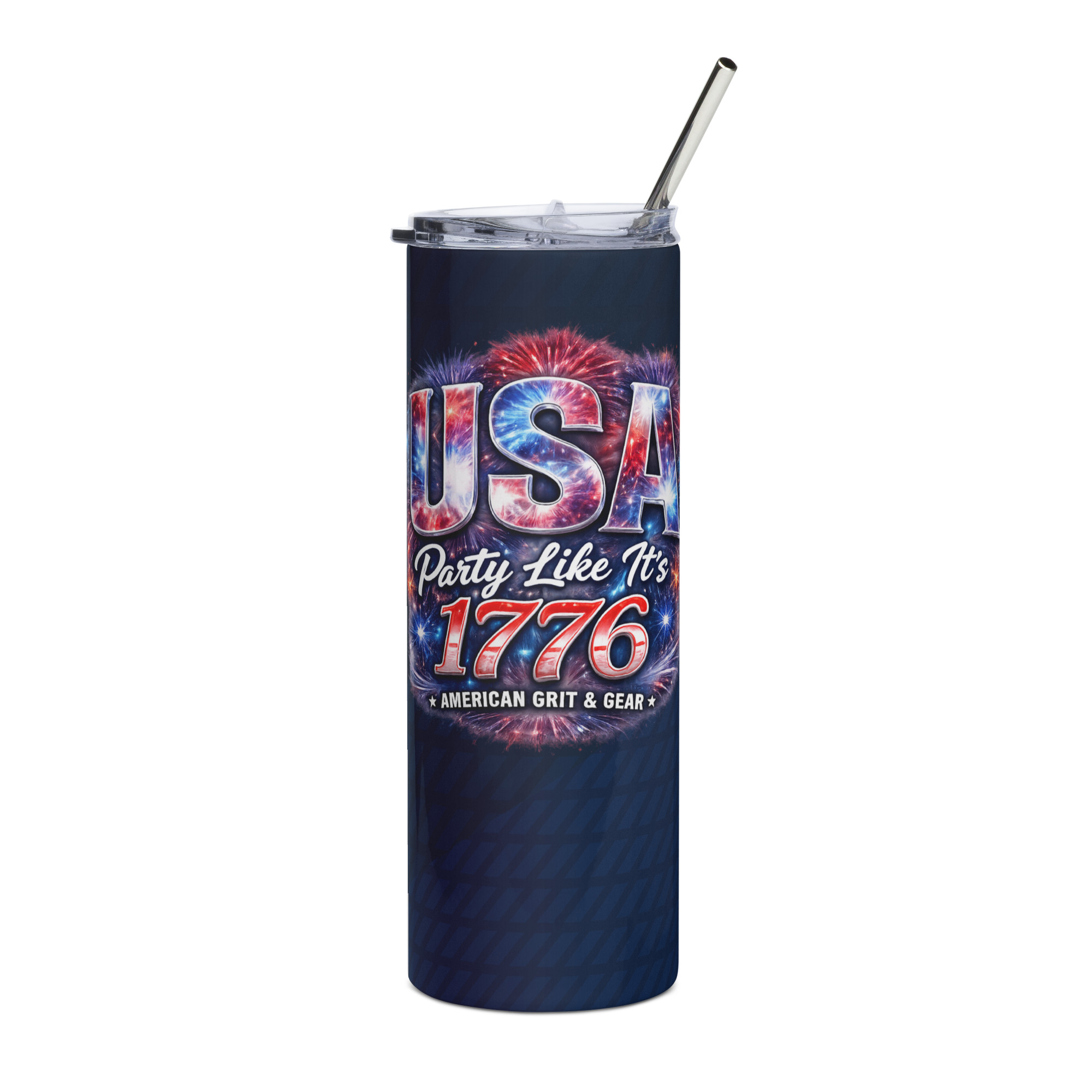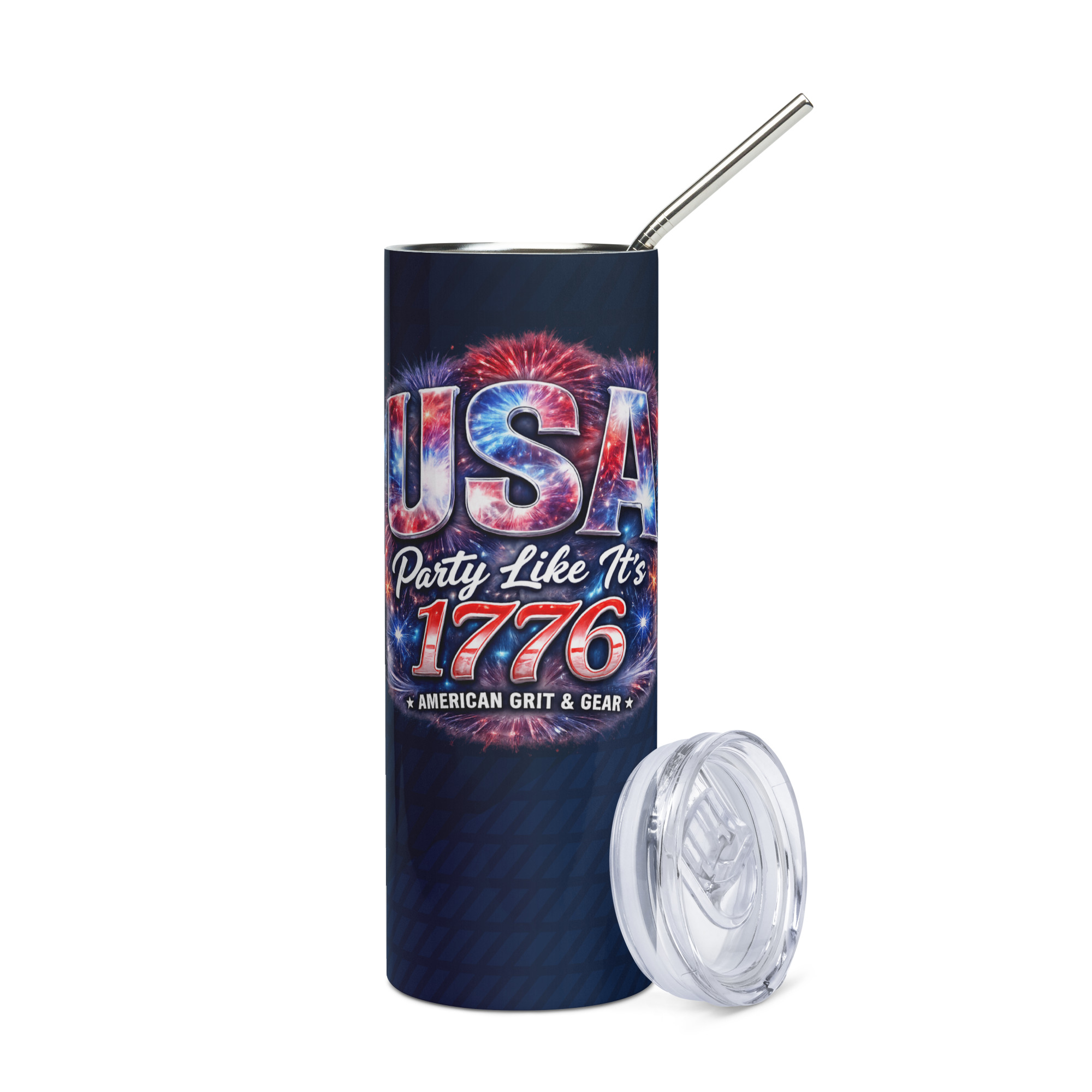 USA Party Like It’s 1776 Stainless Steel Straw Tumbler – 20oz Patriotic Drinkware