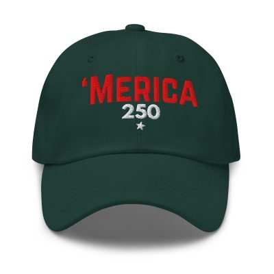 - Bold, simple, and proudly American. The 'Merica 250 Dad Hat celebrates 250 years of freedom with a classic embroidered design and a relaxed everyday fit. FREE USA SHIPPING on this and all American Grit & Gear merch.